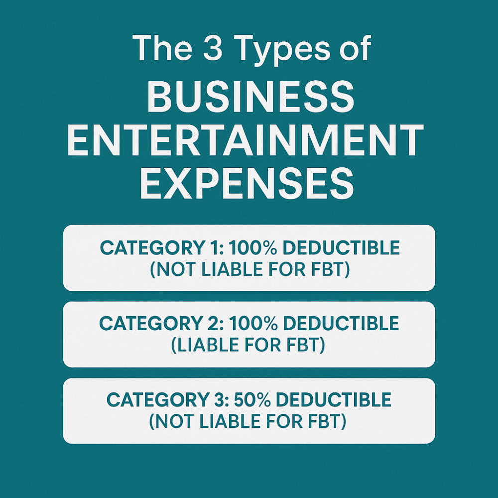 There are three main types of business entertainment expenses, based on how much you can claim and whether the expense triggers Fringe Benefit Tax (short for ‘FBT’).